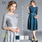 レーススイングドレス ロングワンピース パーティードレス レース きれいめ 膝丈 ワンピース 結婚式 ドレス 二次会 七分袖ワンピース ドレス お呼ばれ 結婚式ワ