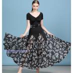 店舗名(チヒロストア)大きいサイズ 社交ダンス衣装 花柄社交ダンスドレス ダンス衣装 レディース 発表会ドレス ステージ衣装 競技用ドレス モダンドレス 練習着 演出用 ワンピース