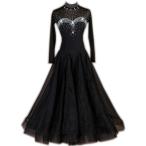 店舗名(Garuda SHOP)Garuda SHOP レディース社交ダンス衣装モダンダンスドレス レッスンウエア競技練習服 ワルツドレス競技用 キラキラ石付き 黒色