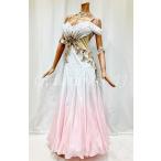 店舗名(社交ダンスドレスJJplus)社交ダンス・ダンス衣装 インポート品 ヨーロッパ製 スタンダードドレス 一点物 M721 ホワイト×ピンクグラデ Mサイズ