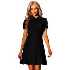 店舗名(ソウテン2号店)uxcell Allegra K 半袖ドレス スイングドレス 無地ワンピース フリル裾 エレガント 蝶ネクタイネック レディース ブラック S