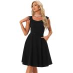 店舗名(Z2ストア)Allegra K 無地ドレス ヴィンテージ ノースリーブ スクープネック エレガント スイングドレス Aライン レディース ブラック XS