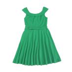 店舗名(ソウテン2号店)Allegra K 無地ドレス ヴィンテージ ノースリーブ スクープネック ベルト付き エレガント スイングドレス Aライン レディース レッド L