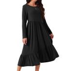店舗名(Z2ストア)Seta T レディース 秋 長袖 ドレス クルーネック カジュアル ゆったり プリーツ ティアード スイング ドレス ポケット付き ブラック M