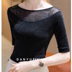 社交ダンス衣装 社交ダンス トップス 五分袖 スパンコール 二重
