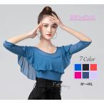 店舗名(FANCY DRESS SHOP)ラテンダンストップス 社交ダンス 上着 ダンストップス フリル 七分袖 踊りブラウス 女性 社交ダンス衣装 上着 競技着 モダンダンス レディース 女性用 ダンス衣